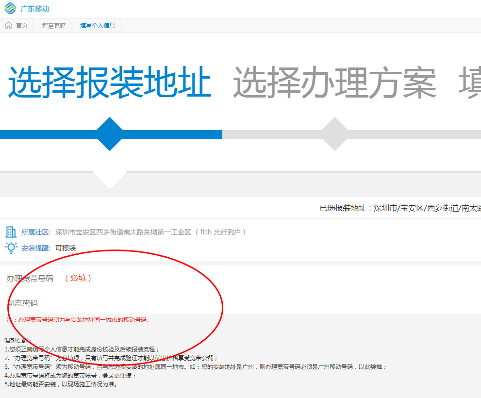 深圳移动老用户新装 移动宽带,报装需要验证码,中国移动发来的随机码,此随机码仅限于验证用户同意允许办理宽带业务,无其他作用。请各位放心。如果号码套餐不足的,需要升级套餐,升级套餐也需要一个验证码,也是中国移动发送的。报装宽带都需要验证码的,全市统一的,不管你通过什么渠道报装都是一样的,营业厅办理也是一样的。
